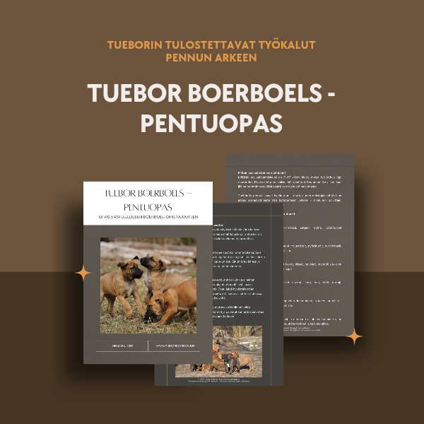 Tueborin oma, tulostettava pennunopas auttaa sinua valmistautumaan arkeen uuden boerboelin kanssa â kĂ€ytĂ€nnöllisesti, lĂ€mminhenkisesti ja kokemukseen pohjautuen.