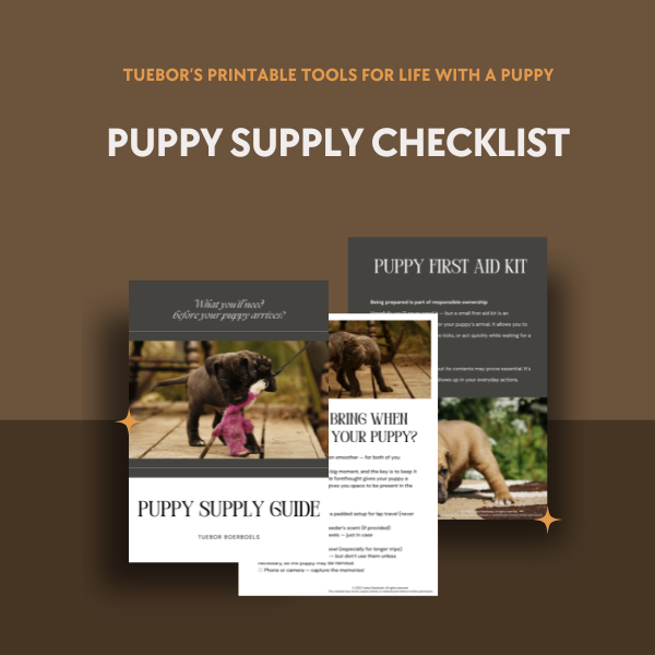 A practical and clear list designed with the size, nature, and needs of a Boerboel (or other large breed) in mind.